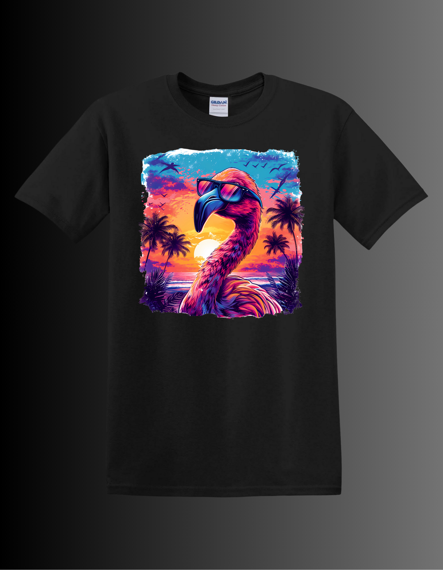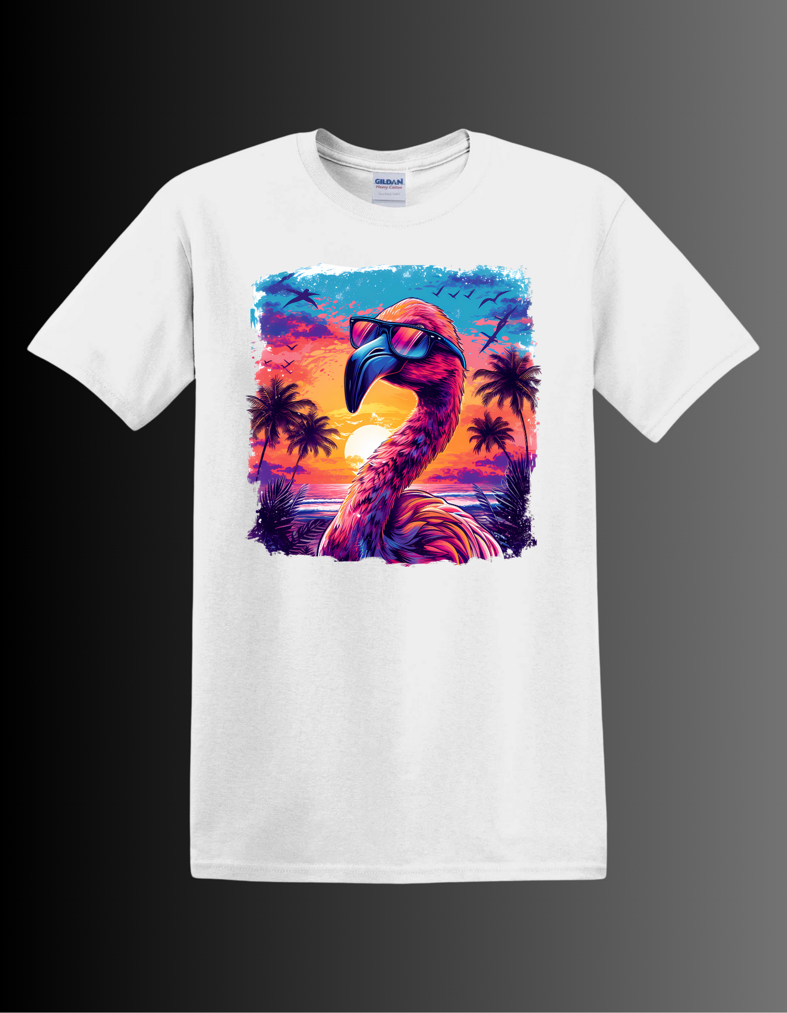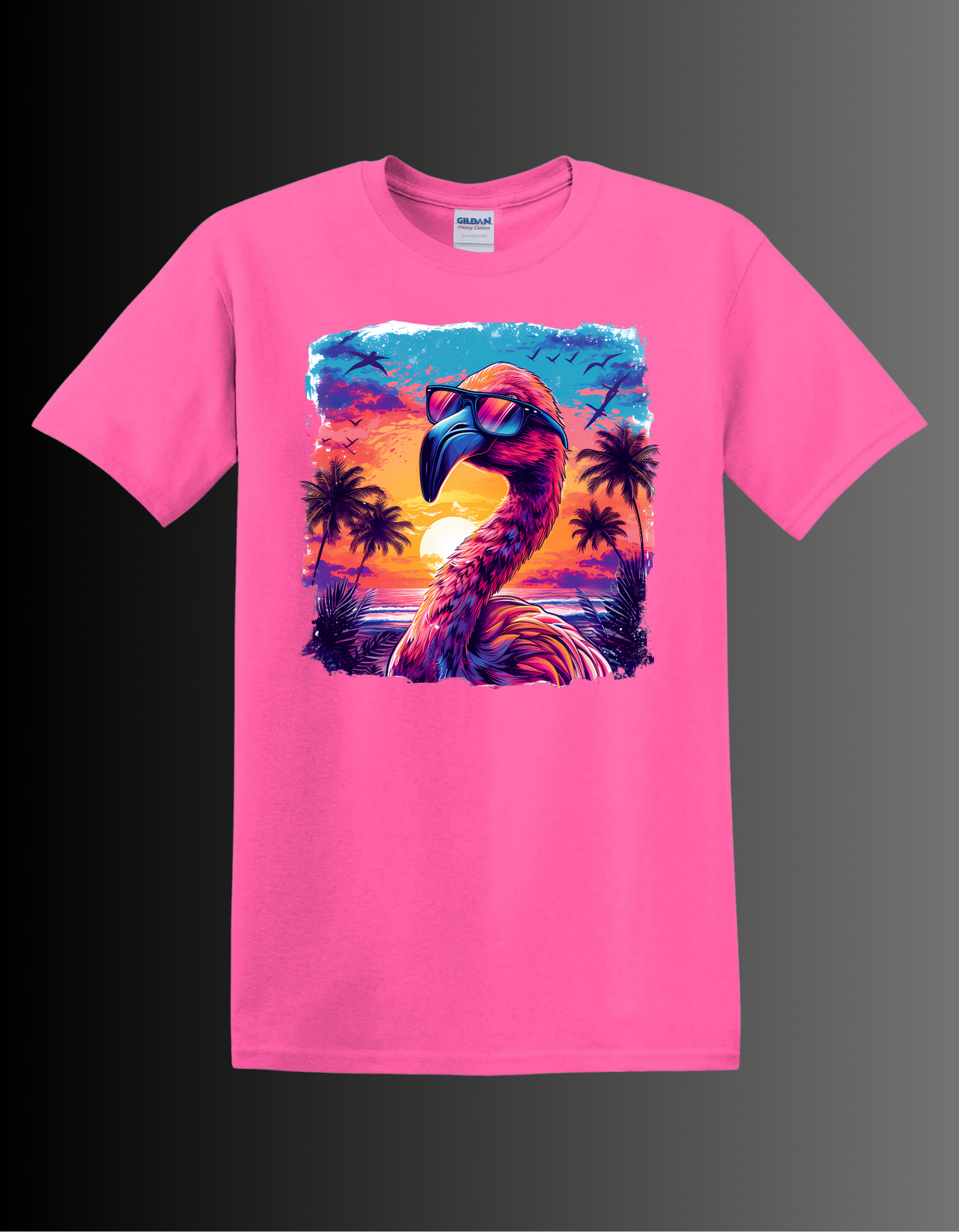 Flamingo on the Beach, made from soft premium cotton for maximum comfort. Perfect for any occasion, this short sleeve shirt exudes luxury and sophistication. Get this must-have garment.